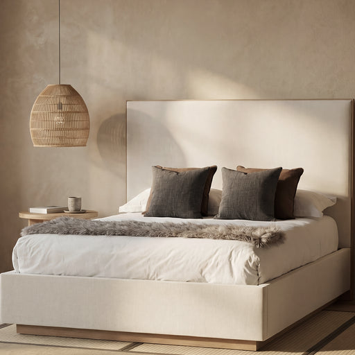 Solaire Upholstered Platform Bed w/ Wood Headboard Panel