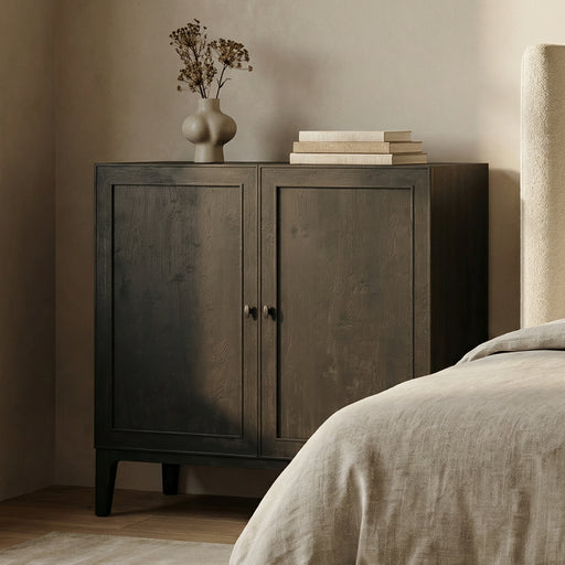 Original Price $1,180.00 USD - Original Price $1,180.00 USDOriginal Price$1,180.00 USD$1,180.00 USD - $1,180.00 USDCurrent Price $1,180.00 USD| /2 upholstered doors, 2 adjustable shelves Dimensions: 42″w x 18 5/8″d x 38 1/2″h Pictures 1-5 shown in Charcoal Slate Pictures 6-7 shown in Espress...